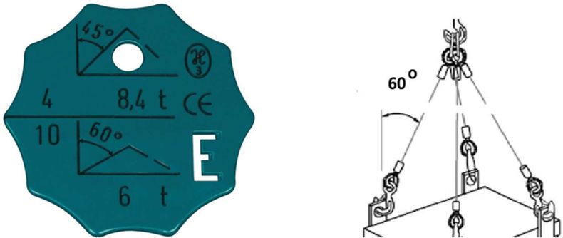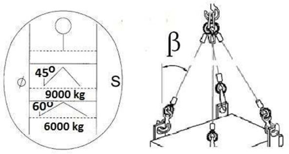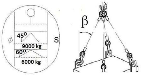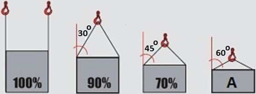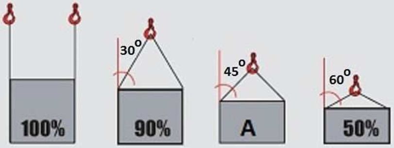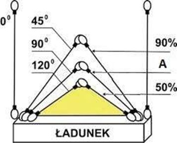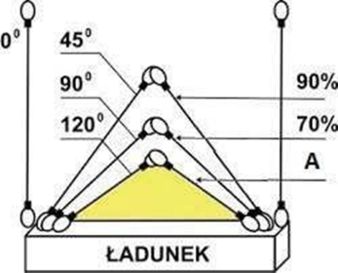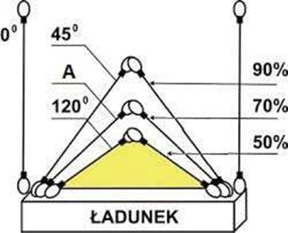 • długość zawiesia musi zapewnić aby kat rozwarcia zawiesia nie był większy niż 120°